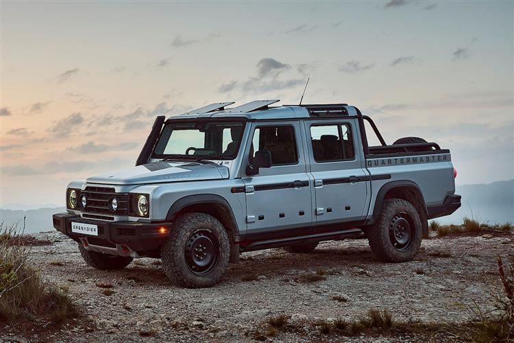 Some people have quite a different idea of what the ultimate pick-up should be. For them, it's not something blinged-up and leather-lined, the ultimate attributes required instead being of the trail-ready kind. These are the kinds of people who in the past might have bought an old shape Land Rover Defender pick-up; who in the US might choose, say, a Jeep Gladiator; and who here might choose this contender, the INEOS Quartermaster. You might immediately pigeonhole it as the pick-up version of the INEOS Grenadier SUV, which is certainly true to some extent, but the Quartermaster is longer overall and rides on a chassis with a lengthier wheelbase. The pricing is in a different, far more exalted league than ordinary pick-ups - but then the off-road ability on offer is too. Let's take a closer look.