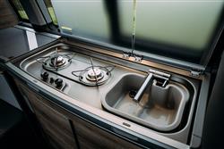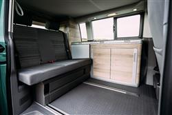Externally, this T6 California looks like the van with windows that it actually is. The chassis platform also formed the basis not only for Volkswagen's Transporter T6 panel van and also its Caravelle people carrier. Inside, California buyers could have full central heating - or more specifically a fresh air system with manual air con, a separate timing switch-operated domestic heater for when you're parked up and even a remote radio control for the whole system. Plus there's split-level accommodation comprising of a fold-out double bed downstairs and (once you've opened the optionally-electrically-elevated pop-up roof section) a bigger double in the roof. For mealtimes, there's a twin-ring gas cooker with stainless steel sink and drainer and, naturally, alongside the cupboards and ample storage, a fridge. There are also great views all round (particularly if you pull up for the night in the Highlands). Other features include a decent infotainment system, a folding dining table, two folding chairs (stored neatly in the tailgate), a clothes cupboard, blackout blinds and smart draw curtains. Most original owners also specified the extra cost roll-out awning too. Downsides? Well, the ceiling is rather low and older people might struggle to reach the roof-mounted bed. Younger families meanwhile, will need more than four seats.