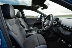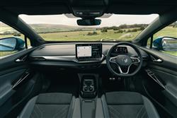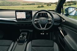 The ID.5 powertrain range starts with a base 52kWh model that uses a Pure 170PS rear-mounted motor and goes up to 226 miles between charges. Ideally though, Volkswagen wants you to choose a bigger-battery 77kWh version with their latest APP550 motor which generates 286PS. This puts out a massive 75% more torque than a base 77kWh ID.5 model did at its original launch back in 2022 (up from 310 to 545Nm, with power up from 174PS); things have really moved on. Despite all this extra pulling power, Volkswagen's managed to make the APP550 upgraded motor more efficient too: mainstream 77kWh ID.5 variants are now supposed to make it up to 339 miles between charges (11.8 miles further than before). Or you can stretch to the top sporty ID.5 GTX, which as before adds an extra motor on the front axle (creating nominal AWD) but now puts out 340PS (41PS more than before), enough to get you to 62mph in 5.4s. Range is up to 327 miles. The ID.5 GTX gets a special downforce package, consisting of a larger spoiler and diffuser, to aid high speed stability. And the chassis has been tuned to handle the extra performance, plus there's lowered suspension and upgraded brakes. And customers can order the brand's 'DCC' adaptive damping system too. The steering is Volkswagen's 'Progressive' set-up (where the ratio becomes more direct as the wheel is turned). Whatever variant you choose, the whole ID.5 experience should be familiar if you've tried one previously. If you haven't, there's a bit to adapt to if this is your first experience of EV motoring. No gearstick, no handbrake, no ignition key and just the sound of silence as the fixed ratio transmission blends an almost endless wave of torque into meaningful and surprisingly rapid forward progress. Like Volkswagen's original post-war Beetle, base versions of this car are rear-driven and when you drive such an ID.5 in town, you quickly realise the real advantages of placing the powertrain - the electric motor and its associated single-speed auto gearbox - on the back axle, thereby freeing up the front wheels for steering duties; the result is a London taxi-like 10.2-metre turning circle. Beyond the city limits, that drive format allows for a near-50:50 almost perfect weight distribution which, together with the low centre of gravity provided by the central battery pack placement, helps disguise the portly weight this SUV must carry around. Traction through the turns is excellent and body roll is checked by firm damping cleverly engineered for suppleness over poor surfaces. All of which ought to provide the recipe for a decently sporting EV - and in some ways it does.
