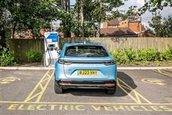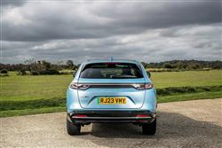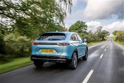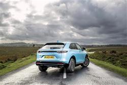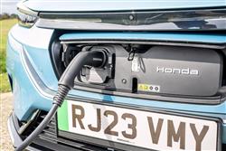 Well quite a rapid take-off from rest - this car's a bit 'old school EV' like that. Which might be something of a problem if the tarmac's damp and you've selected the most urgent of the three provided drive modes - 'Sport'. With that engaged in such conditions, it really is extremely easy to spin the front wheels and, if you're on a bend, find yourself being skipped over to a part of the road you didn't really want to be on. Apply the throttle more evenly or restrict yourself to the other two provided drive settings (''Econ' and 'Normal') and in damp conditions this won't be so much of an issue. But we still think that this e:Ny1's rather abrupt torque delivery would be better managed if Honda specified a grippier set of tyres, rather than the efficiency-orientated Continental UltraContact rubber fitted here. This, after all, is an HR-V-sized crossover with around 50% more power than an HR-V - 201bhp to be exact, with 310Nm of torque and 0-62mph in 7.6s, though of course if you exercise either of those figures to any great extent (or approach the limited 99mph top speed), you'll find the 68.8kWh battery's mileage range dropping like a stone. Which is something you're going to have to manage because there isn't that much of it - at least not by the standards of the EVs that sell at this Honda's quite exalted price point. As you'll hear elsewhere in this film, the quoted 256 mile range figure (which incidentally we've found very difficult to replicate with this test car) is somewhat disappointing in a class where the norm is 270-280 miles, with better models up at 320-340 miles. Of course, if - as will often be the case - this e:Ny1 is only to be used as an extra car for suburban journeys, then range realism won't matter much. For that, your priorities are likely to centre more on ride and refinement. Does this Honda make up ground there? To some extent, yes. All removal of an engine does in quite a few EVs in this class is to more greatly highlight wind and tyre noise; there's little of either here and you really get the benefit of that at higher speeds, where progress is accompanied by the kind of hush you'd expect in a larger, more expensive EV. This hasn't been achieved by accident; the wheels feature built-in resonators to try and cancel out road roar, there's a special damper on the rear axle and 'strategically placed' insulation has been scattered around the cabin. In suburbia though, all this effort's occasionally slightly undermined by a higher-than-usual level of electric motor whine, which sometimes even eclipses the mandatory pedestrian warning noise. Ride quality's a bit of a mixed bag too. On the highway, it's very good, but you might not be so impressed over poorer surfaces at urban speeds, where potholes and speed humps are sometimes more keenly felt than you might ideally like. No adaptive damping system's offered to help counter this.